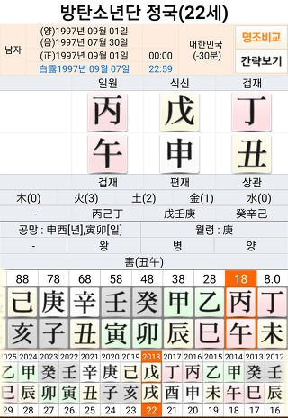 세계적인 인기를 끌고 있는 남자 아이돌 그룹 방탄 소년단의 메인 보컬 정국의 '사주' 풀이를 해보겠습니다.