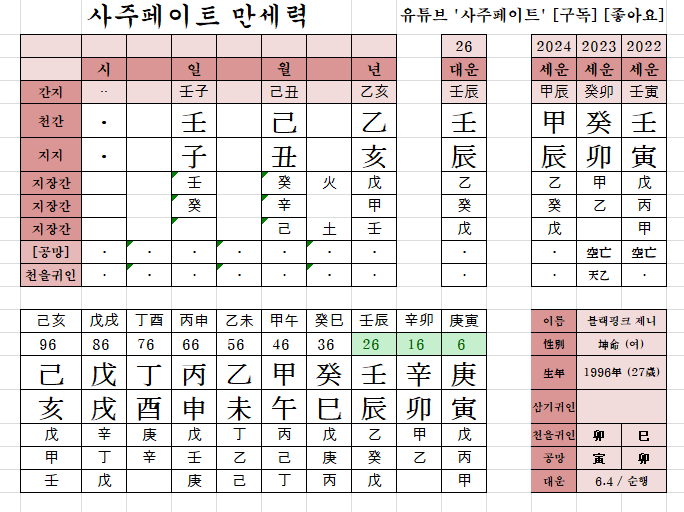 사주페이트의 사주 리뷰 - 블랙핑크 제니 https://sajufate2.tistory.com/53