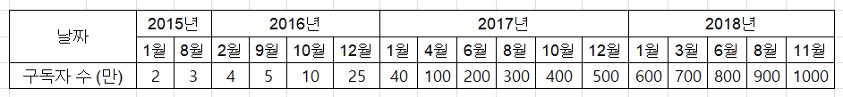 2018년까지 성장이 시작된 이후 약 2.5년만에 1,000만 구독을 달성했네요.