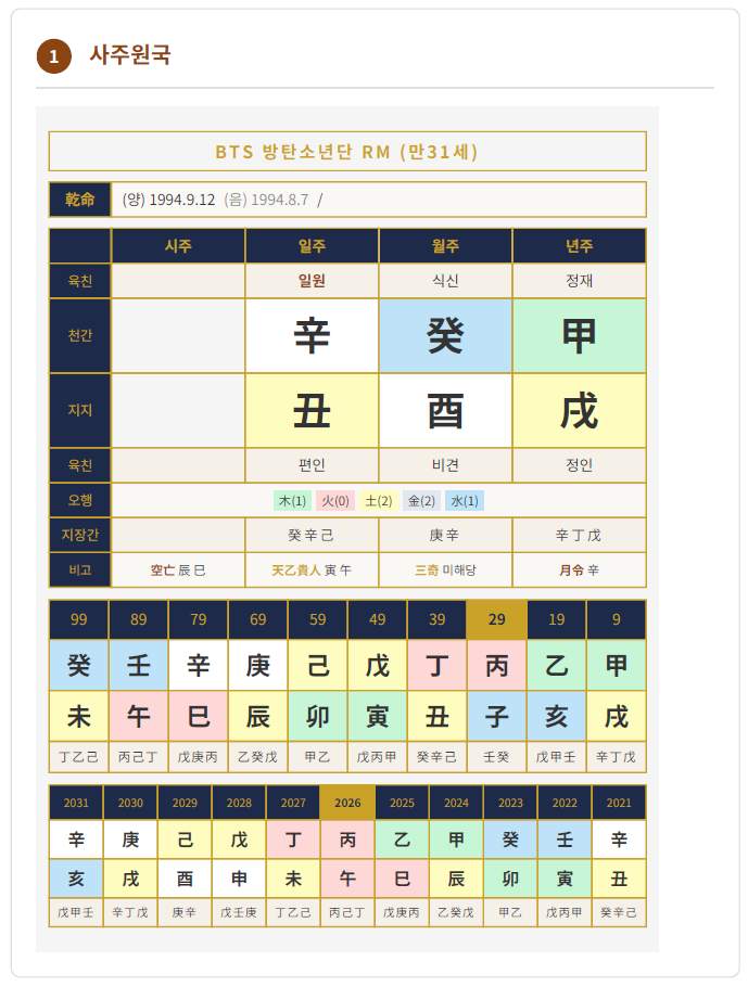 RM의 사주 분석, 어떠셨나요?