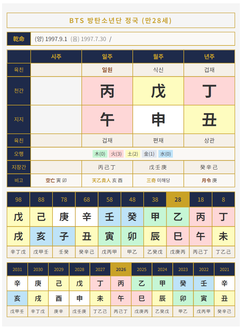 정국의 사주 분석, 어떠셨나요?