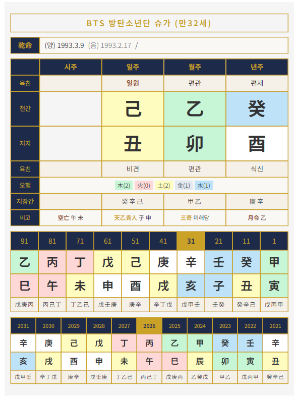 BTS 방탄소년단 슈가 2026년 신년운세 사주 분석